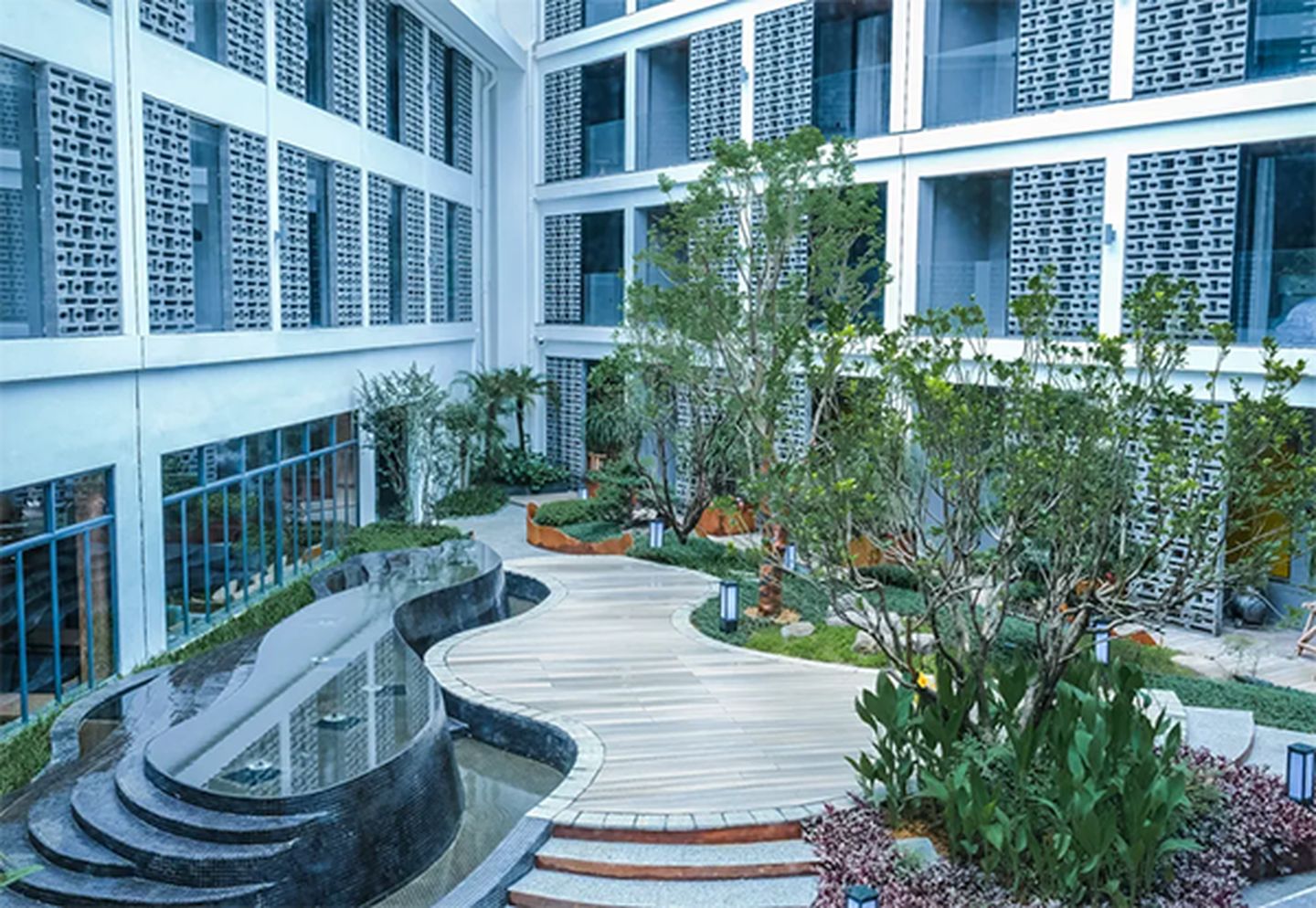 无处不在的光影美学,无论是酒店大厅,还是一楼的庭院,真正的做到了步随景移,让行走变得趣味性十足。